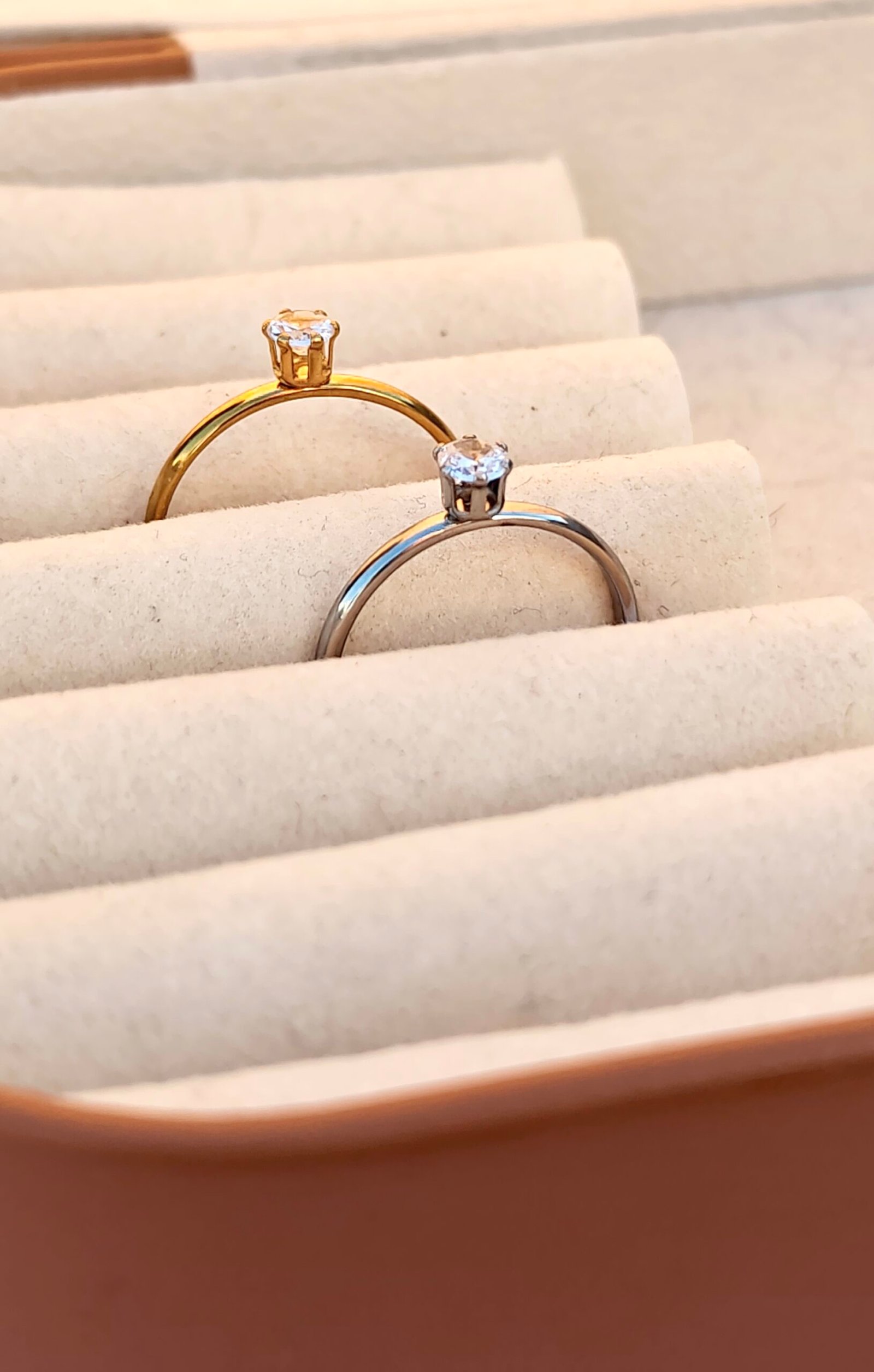 O Anel Solitário em Aço Inoxidável não é apenas uma joia, mas também uma declaração de estilo. Você pode usá-lo em casamentos, festas ou até mesmo no dia a dia. Sua forma simples mas impactante destaca-se em qualquer situação, fazendo com que você se sinta confiante e sofisticada. Escolha entre as opções de dourado ou prata e complemente seu visual com este clássico moderno.